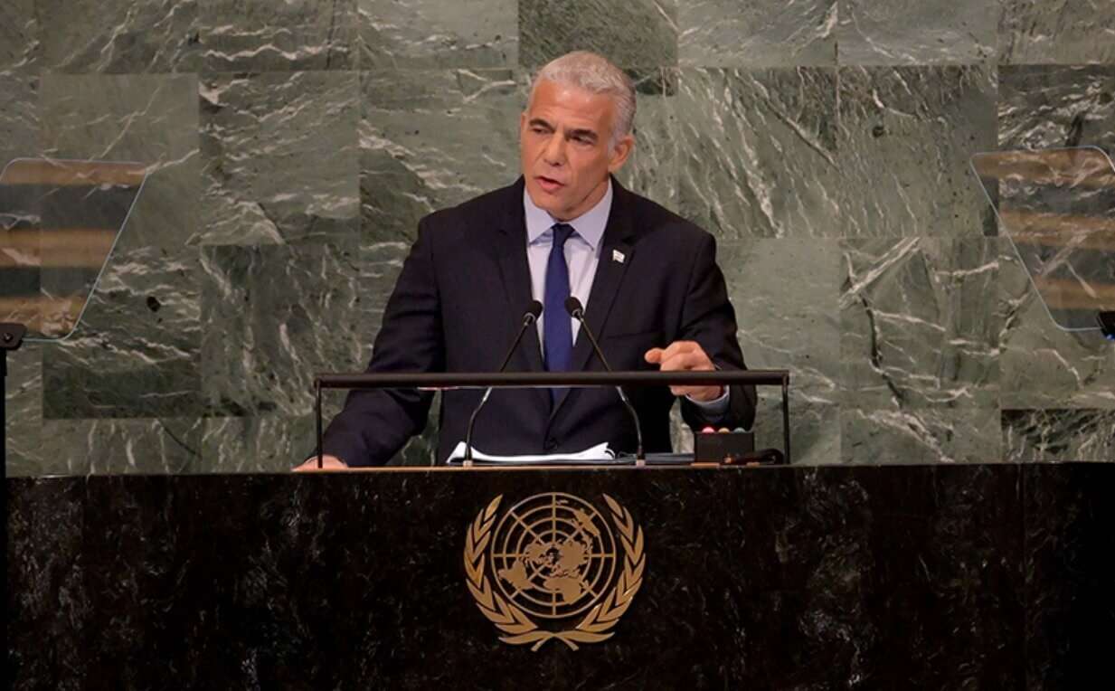 «Un acuerdo con los palestinos, basado en dos Estados para dos pueblos, es lo correcto para la seguridad y economía de Israel y para el futuro de nuestros hijos. La paz es la decisión más valiente que podemos tomar. Paz no es debilidad», ha afirmado Yair Lapid, convirtiéndose en el primer jefe de Gobierno israelí en los últimos seis años que apoya la creación de un Estado palestino desde el atril de la Asamblea General de la ONU. De lo que no ha sido el primero es en avisar que Israel «hará lo que tiene que hacer» para evitar un Irán nuclear. «Pese a todos los obstáculos, la mayoría de israelíes apoya la visión de la solución de dos Estados. Yo estoy entre ellos. Tenemos solo una de una condición, que el futuro Estado palestino sea pacífico y no otra base de terror que amenace el bienestar y la existencia misma de Israel», ha añadido Lapid aludiendo a la retirada de Gaza.