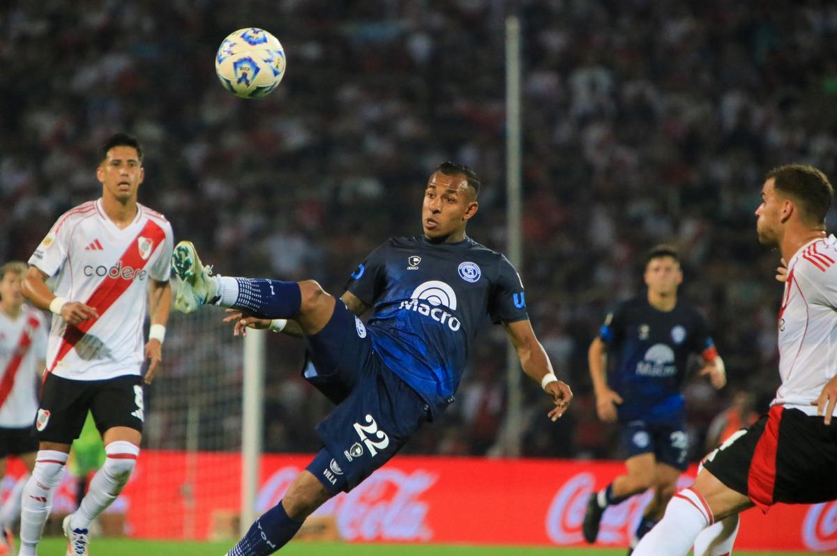 River reaccionó después de la desventaja, empezó a sumar aproximaciones y, finalmente, llegó al empate por un polémico penal que convirtió Facundo Colidio. Nazareno Arasa cobró una mano de Sheyko Studer (ya había cometido otro penal por una mano, pero lo salvó una posición adelantada de Pablo Solari), el VAR llamó al árbitro porque no pareció aumentar volumen aunque el juez mantuvo su posición.