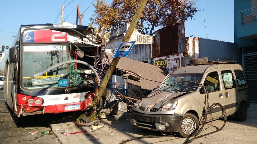 Se estrelló un colectivo contra puesto de diarios en Lanús