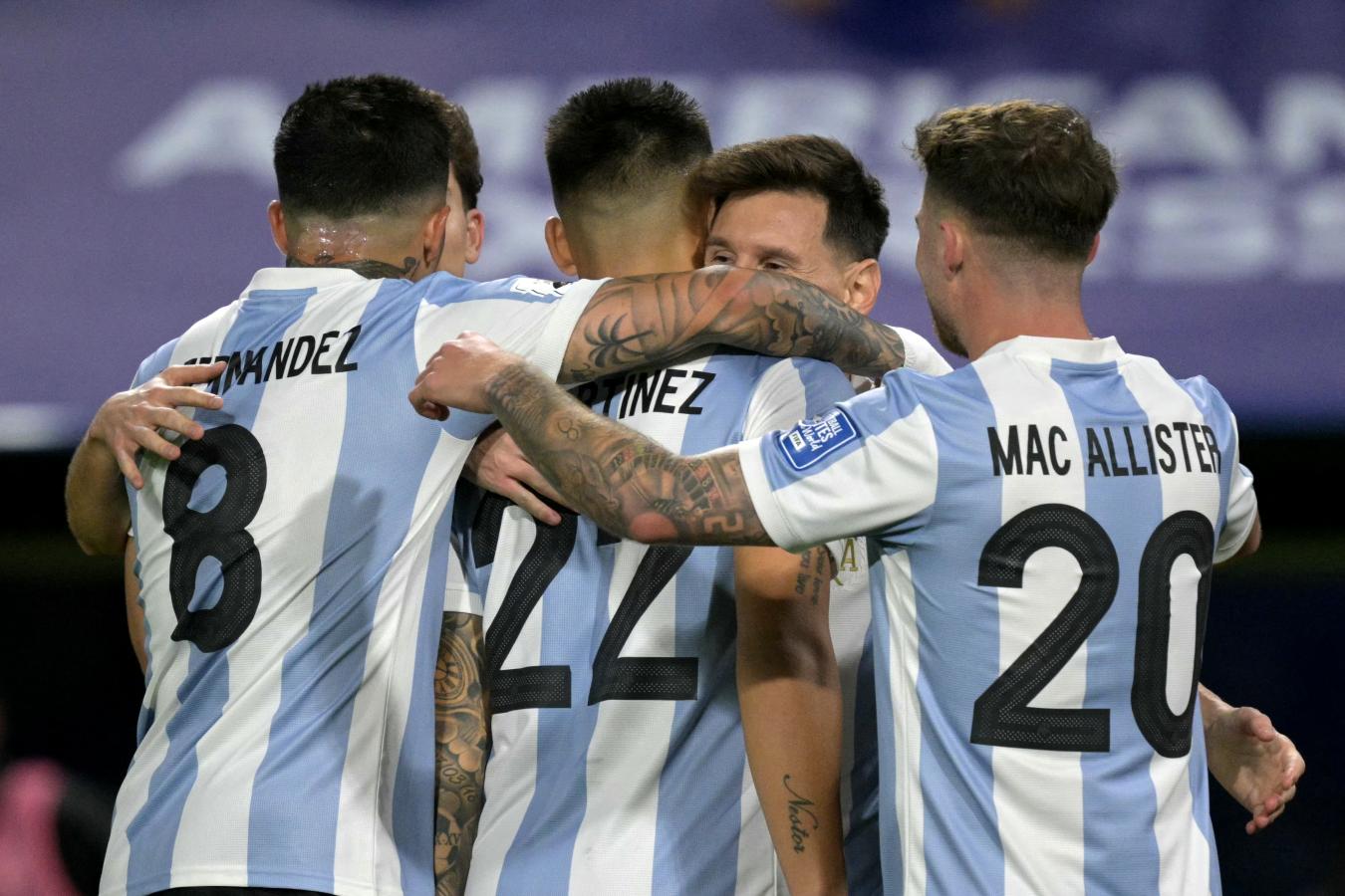 Llegó a los 10 minutos del complemento (55′) tras un centro de Messi que conectó de zurda con una notable pirueta Lautaro Martínez para vencer al arquero Pedro Gallese. La albiceleste campeona del mundo llega de una sorpresiva derrota ante Paraguay en su anterior presentación por 2-1 en suelo guaraní, e intentará aprovechar la localía en la cancha de Boca para volver al sendero de la victoria. Al igual que para ese encuentro, Lionel Scaloni optó por un doble nueve conformado por Lautaro Martínez y Julián Álvarez, con Lionel Messi suelto detrás de ellos.