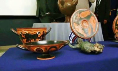 La fiscalía de Nueva York presentó 59 antigüedades robadas que devolverá a su país de origen, Italia, como parte de un esfuerzo para combatir a los...